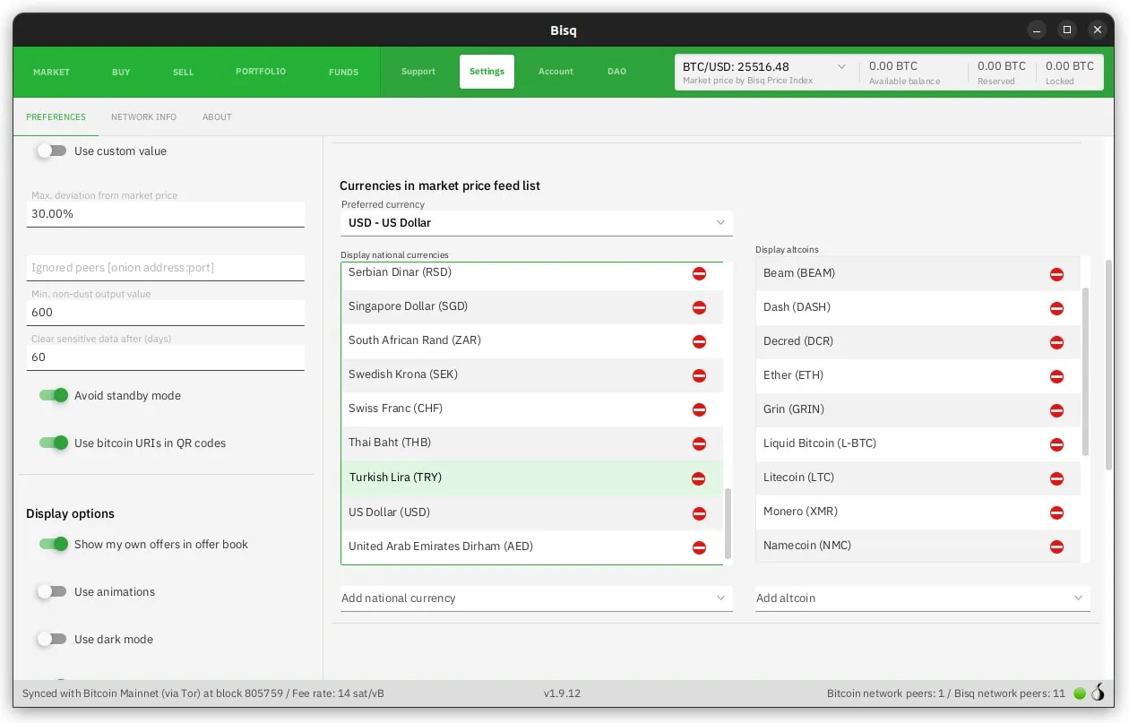 This long life also shines through when you see all the various options and features that Bisq has available. From its solid user interface, to its DAO to being able to connect it to your own full node to other less common things you don’t normally find on crypto exchanges such as full Coin Control when sending coins to another wallet, Bisq is sure to have what you crave (just not electrolytes).