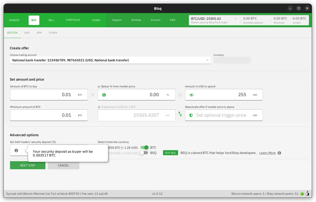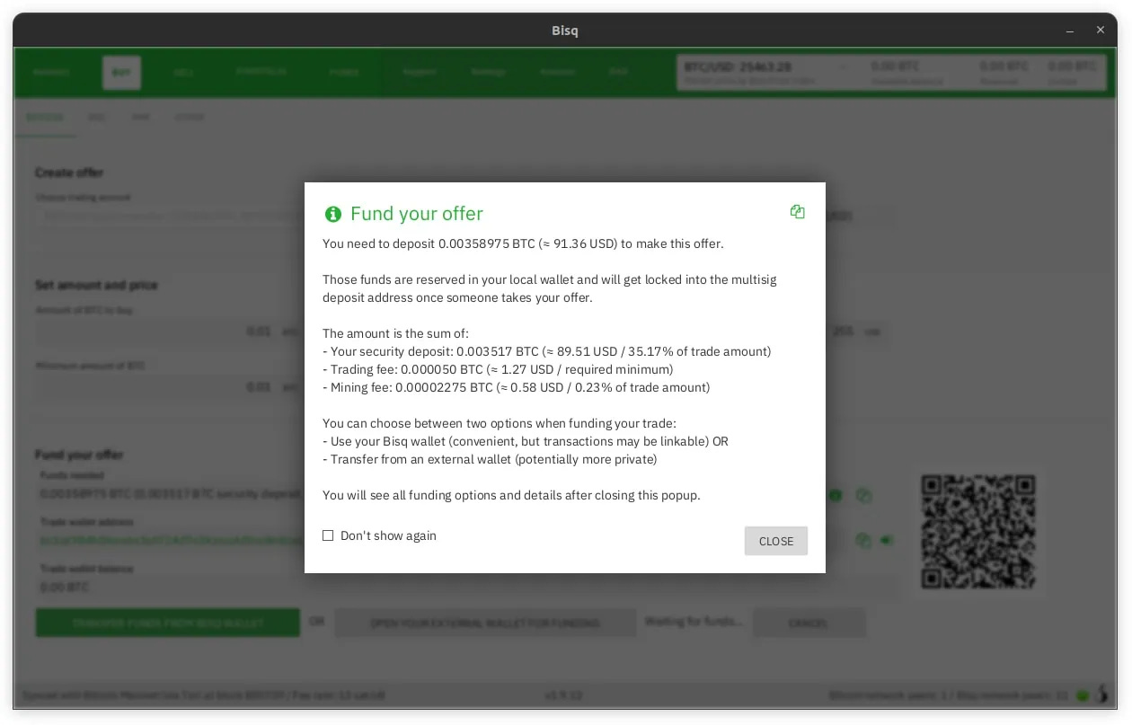 While you shouldn’t be storing any large amount of funds in this Bisq wallet, it will likely have a moderate amount in it as this is what’s used to fund your security deposits and trading fees.