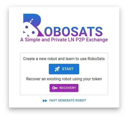 Once you’ve installed Tor Browser, open it and go to https://dex.robosats.com. You’ll be welcomed by the start page which has a few options for you.