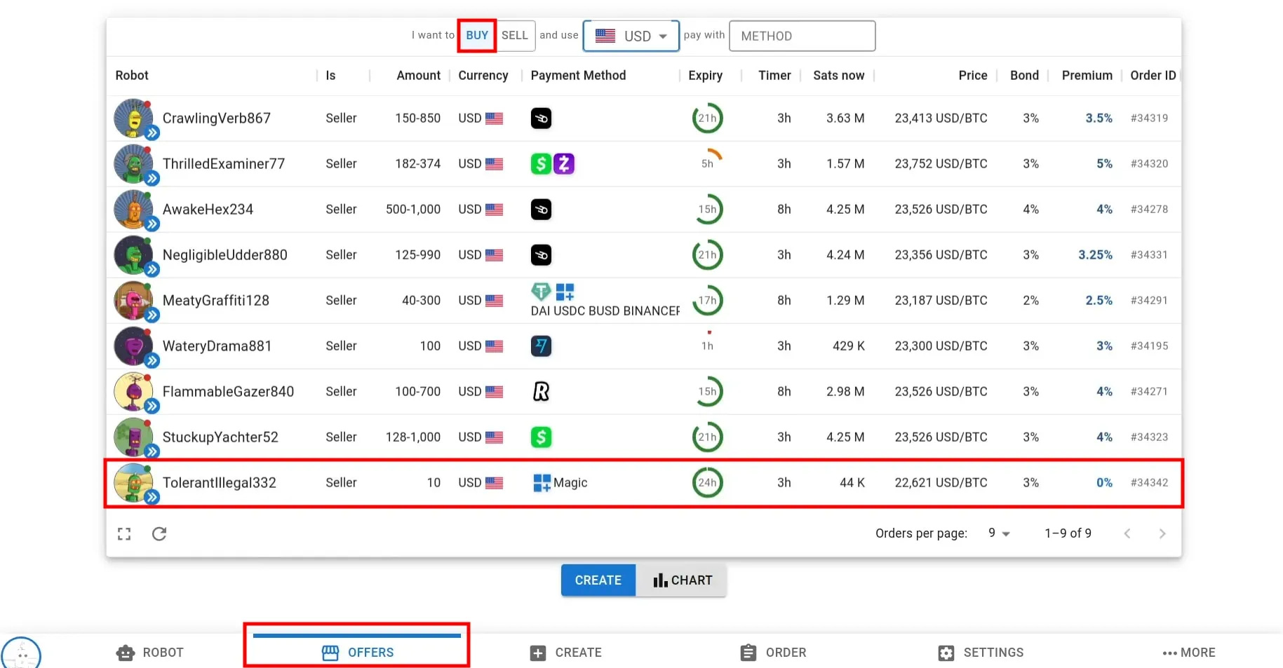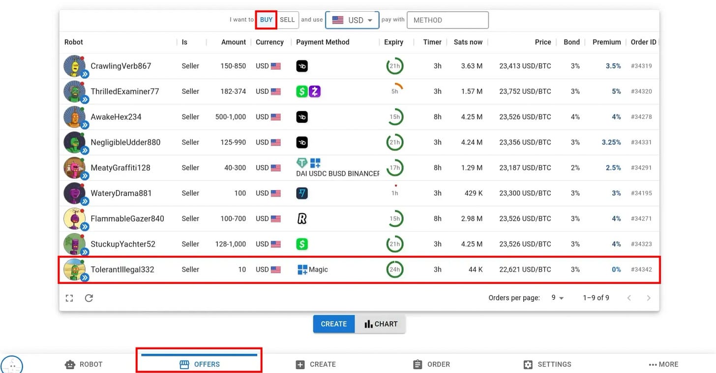 Whichever one you choose, make sure it has some funds in it for the bond (usually 3% of the order). This bond is a security deposit that protects both the seller and buyer. Beginners wanting to buy their first bitcoins via RoboSats can run into a bit of a conundrum though. They will need some bitcoins in order to buy their first bitcoins. To get around this catch-22 there’s a few options: